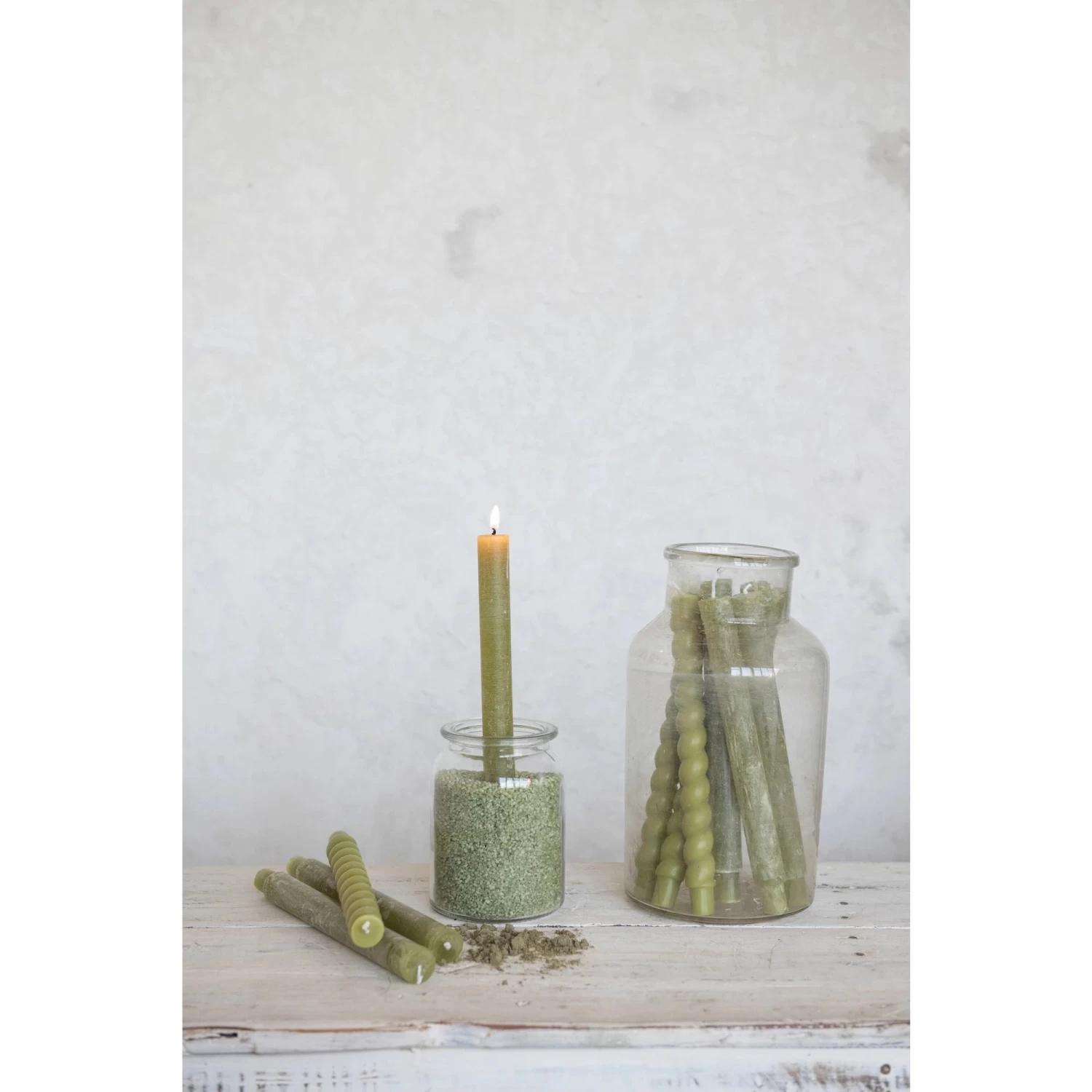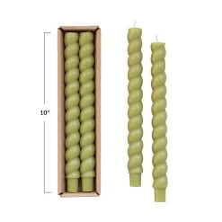 Elevate the atmosphere with our Green Twisted Tapers. Adorn your home in effortless style and ambiance with our set of 2 unscented candles, each crowned with a detailed and one-of-a-kind twist. Perfect for intimate gatherings, dinners, and parties, these candles will add a touch of sophistication to any occasion.