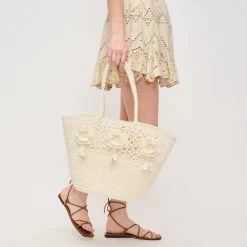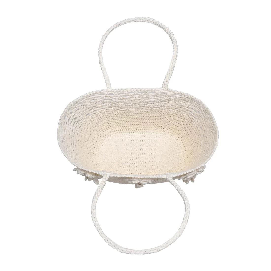 Timeless and effortlessly chic, the Hampton Tote in Ivory is your go-to accessory for both everyday elegance and vacation-ready style. Crafted from ethically sourced materials, this versatile tote showcases a delicate crochet design with floral embellishments, adding a touch of artisanal charm. Lightweight yet spacious, it easily holds all your essentials—making it perfect for brunch dates, beach days, or strolling through the city. Embrace sustainable fashion without sacrificing style with this beautifully crafted ivory tote bag that pairs seamlessly with any outfit.