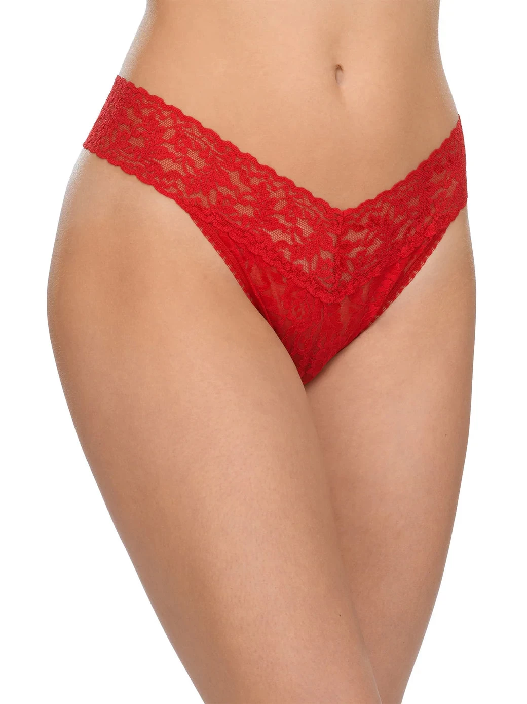 Indulge in both style and comfort with our Signature Lace Original Thong in Red. The V-shaped cut and delicate lace elevate your look while providing a flattering fit. Made with ultra-soft fabric, you’ll feel your best all day long.
