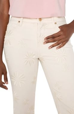 Indulge in luxury with our must-have Hannah Crop Flare With Fray Hem. These stylish jeans feature delicate floral embroidery and a trendy frayed hem. Elevate your look with the matching Denim Jacket for the ultimate touch of sophistication and style.