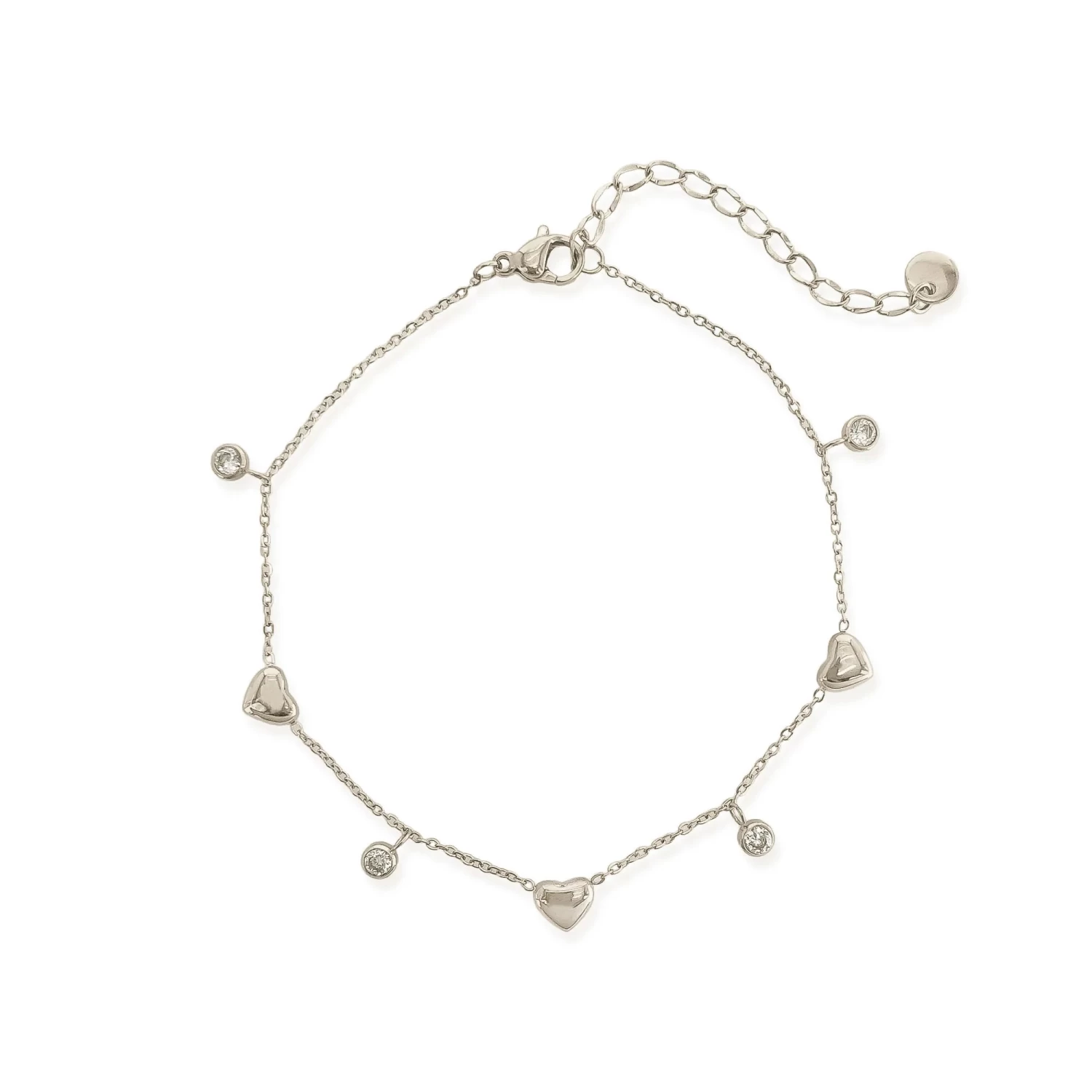 Delicate yet durable, the Heart Water Resistant Anklet in Silver brings a touch of elegance to your everyday style. Crafted with a sleek water-resistant silver chain, this anklet features three dainty heart charms and four shimmering cubic zirconia studs for subtle sparkle and romantic flair. Designed to withstand water and daily wear, itโs perfect for summer adventures, poolside lounging, or effortless layering. A standout piece in any minimalist silver jewelry collection, combining style and function with ease.