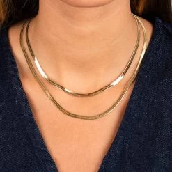 Add a true classic to your everyday stack with the Herringbone Chain Necklace. Wear this timeless gem with anything and everything in your jewelry box. Create an uber-elegant look when you wear it with your favorite chains and chokers.Â
