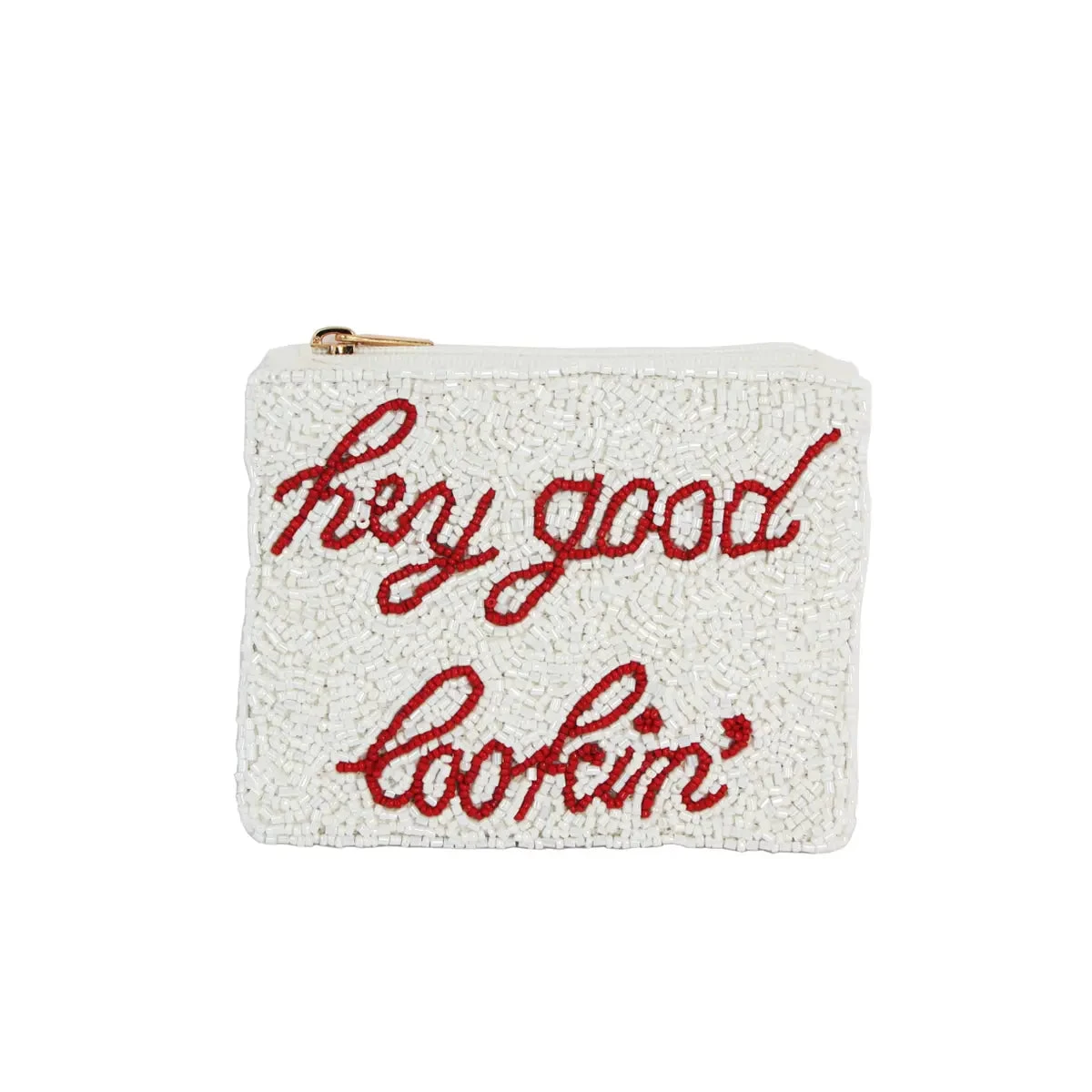 Indulge in sophistication with our Hey Good Lookin Coin Purse. This unique and daring bag features a stunning beaded coin purse design that adds texture and dimension to any outfit. Elevate your style with this must-have accessory. Measures 5×4 inches.
