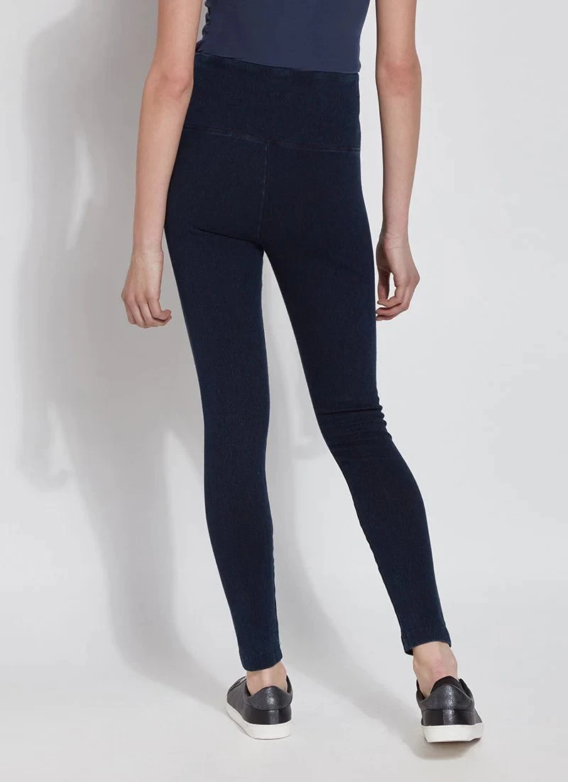 Upgrade your denim game with the Indigo Denim Legging. Crafted from 4-way-stretch knit denim, these ankle-length leggings boast a slimming fit and a concealed patented waistband, offering ultimate comfort and style. It’s no surprise that these denim leggings are among our hottest sellers! Elevate your wardrobe with this versatile and flattering piece, perfect for any occasion.