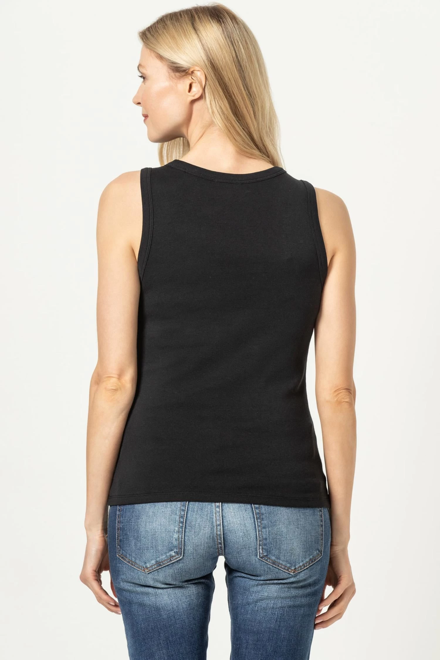 Discover the versatility and timeless appeal of the Jewel Tank in Black, a must-have addition to your wardrobe. This cotton rib tank is designed with a clean and simple silhouette that effortlessly layers under any fabric for endless styling possibilities. The jewel neckline creates a classic look, and the high-quality cotton fabrication offers a comfortable, slim fit to flatter your figure. Embrace the simplicity and beauty of this tank, and enjoy its seamless integration into your wardrobe.