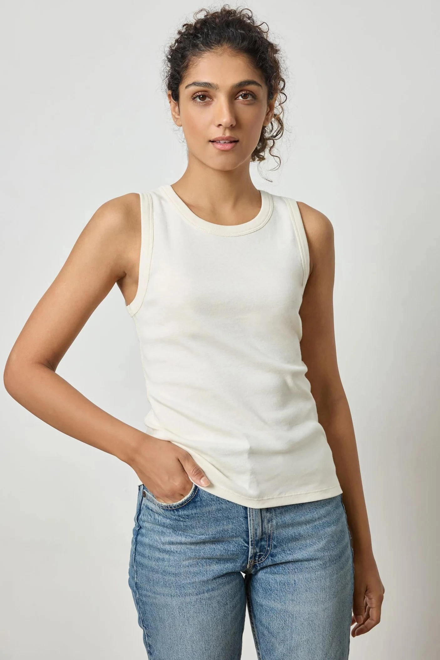 Add a touch of elegance to your wardrobe with our new Jewel Tank in Rope. Made from our classic 1×1 Rib fabric, this tank is designed for a clean and sleek fit, while the heavier-weight cotton provides comfort and stretch. Perfect for showing off your arms or layering.