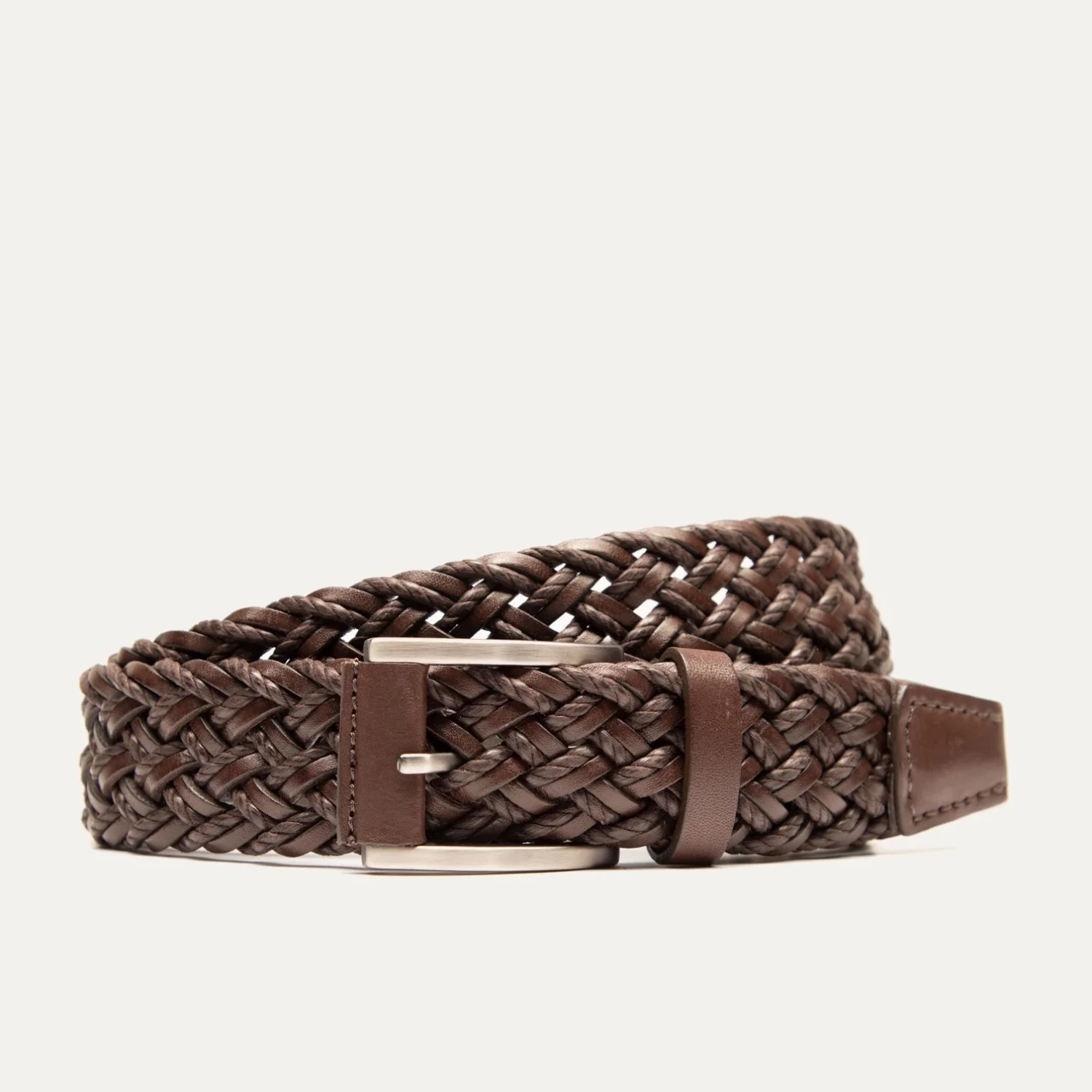 Leather Braided Waxed Cord Belt in Brown