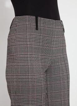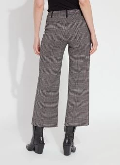 Indulge in luxury and comfort with the Livia Crop Pant in Boston Glen Plaid. Made from tightly woven Ponte Jacquard, it features 4-way stretch and a wide, cropped leg for a relaxed fit. The front pintucks and back welt pockets add sophistication, while the Black Vegan Suede Beltloops with gunmetal studs provide a touch of glamour. Complete the look with the Irina Satin Jersey Turtleneck Top and Aubrey Vegan Suede Blazer.