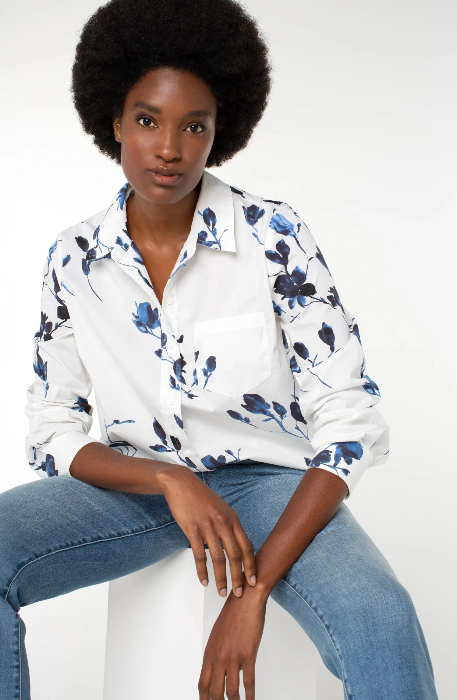 Elevate your style with our Long Sleeve Classic Fit Button Front. The Indigo Rose print adds a touch of sophistication to this must-have, perfect for adding a feminine touch to any outfit. Upgrade your wardrobe with this essential piece.