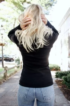The perfect layering piece for Fall! This Long Sleeve Crew in Black is the perfect staple in your timeless collection. With a crew neckline, fitted design, and easy pullover styling is sure to be a favorite! The style options and cuteness factor goes on forever with the possibilities this simple black, cotton long sleeve top adds to your closet.Â