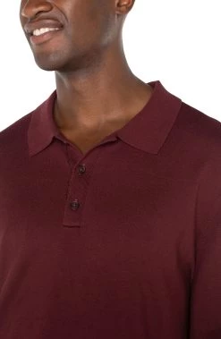 Long Sleeve Sweater Knit Polo in BurgundyÂ