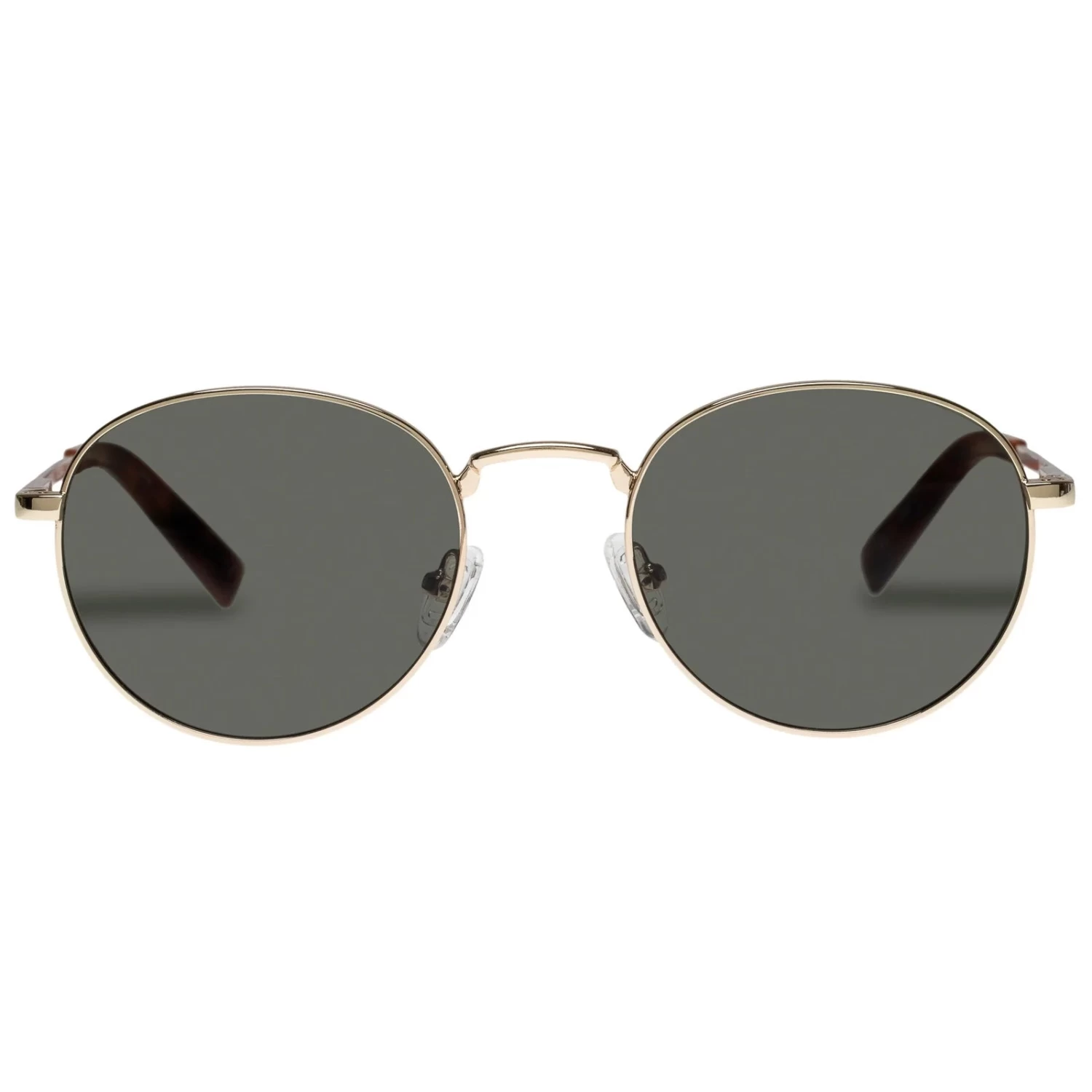 Introducing our Lost Legacy Sunglasses, inspired by the timeless allure of ’50s Hollywood. With a round silhouette and adjustable nose pads, these classic gold frames offer both style and comfort. Featuring shatterproof lenses, these sunglasses are perfect for everyday wear. Elevate your look with sophistication and charm.