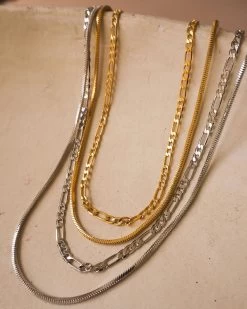 Famously you and famously stylish. You’re Hollywood, picturesque material with all the talent for dressing your part for the day. The Celia Chain Necklace in Gold is a gold figaro necklace and gold herringbone chain necklace with beautiful layering to make your gorgeous looks for the day even more effortless. Shine brightly wherever you go with these golden nickel-free necklaces to accessorize beautifully.Â