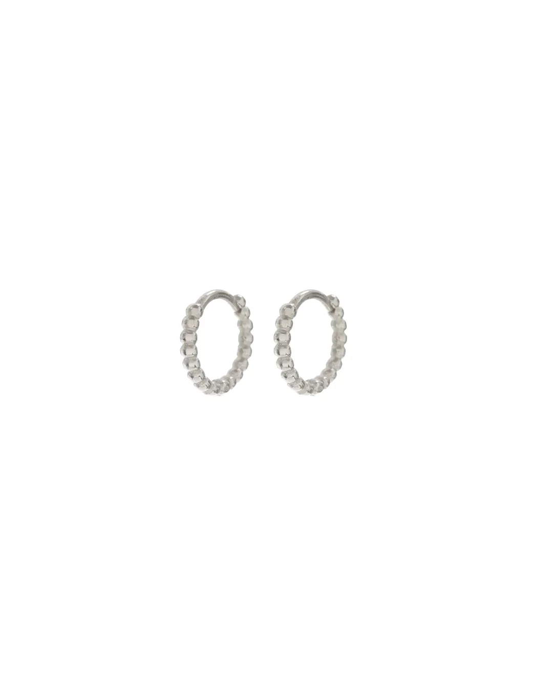 Mini Beaded Huggies in Silver
