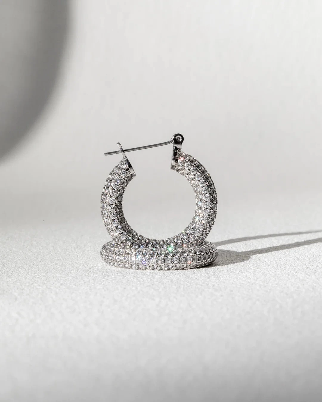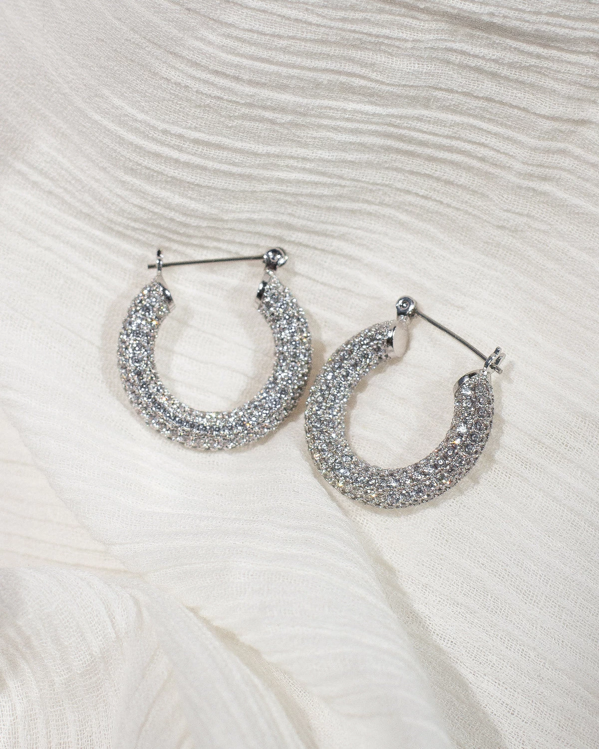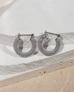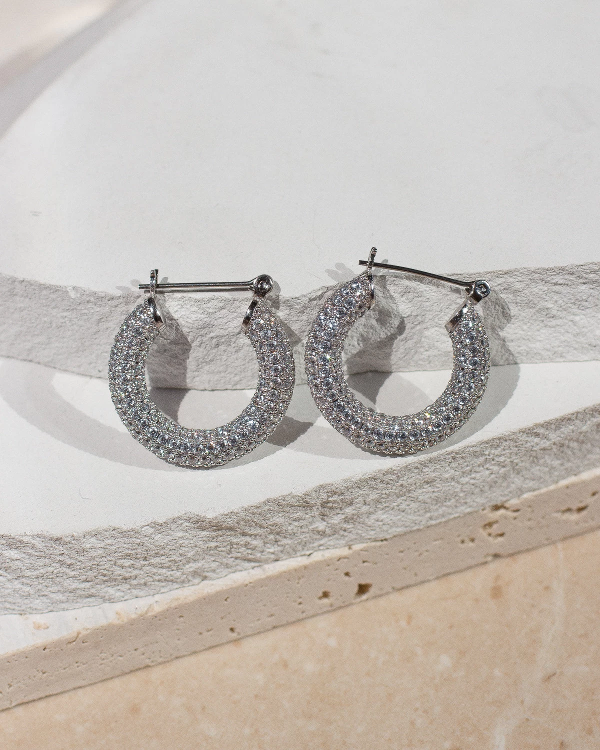 Elevate your jewelry collection with small, luxe accessories. Designed for everyday wear, the PavĂ© Baby Amalfi Hoops in Silver are adorned with hand-set CZ stones that provide a luxurious fine-jewelry look. These hoops are the perfect addition to any outfit, adding a touch of elegance and sophistication without overpowering your look. The slightly curved bar closure ensures a comfortable fit that will stay securely in place all day long with maximum comfort. These earrings are a versatile accessory that can be dressed up or down, making them the perfect addition to any jewelry collection. Whether you’re looking for a gift for yourself or someone special, they are sure to impress
