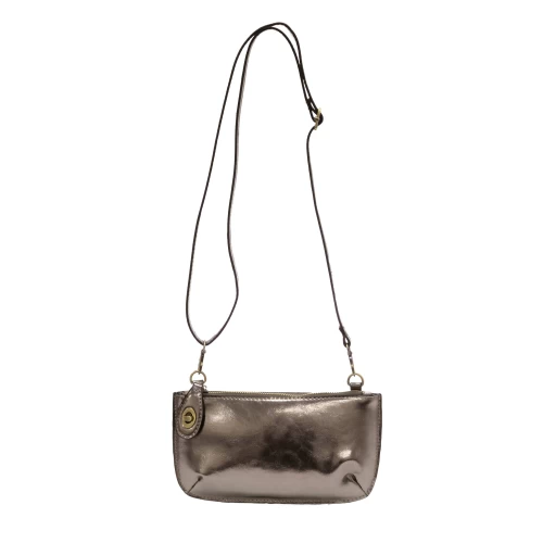 Indulge yourself with our Mini Crossbody Wristlet in Liquid Metal Chrome, the perfect addition to any elegant outfit. With a polished turn lock and six card slots, this mini clutch is both practical and luxurious. The interior zipper adds convenience, while removable straps allow for versatile styling options. Elevate your look with this sleek and versatile accessory.