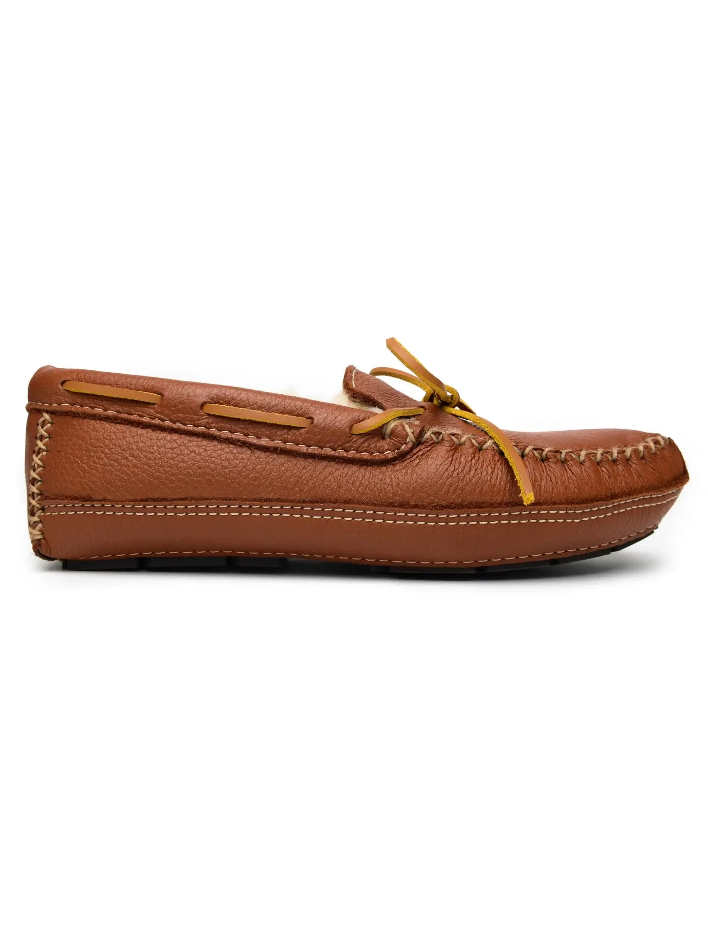 Indulge in luxury with our Tan Sheepskin Hardsole Moccasin. Made with a soft, genuine moosehide upper and lined with plush sheepskin, this men’s moccasin provides unmatched comfort and warmth for those chilly winter days. Treat your feet to the ultimate cozy experience.
