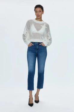 Indulge in the effortlessly luxurious Monroe Crop in Vermont. This relaxed cigarette silhouette boasts a cropped leg for a flattering, figure-hugging fit. Crafted from our super stretch denim, it offers supreme comfort while the dark blue indigo wash with fading and laser whiskering details exudes elegance. Complete with a clean finished hem, this versatile piece adds a touch of sophistication to any wardrobe.