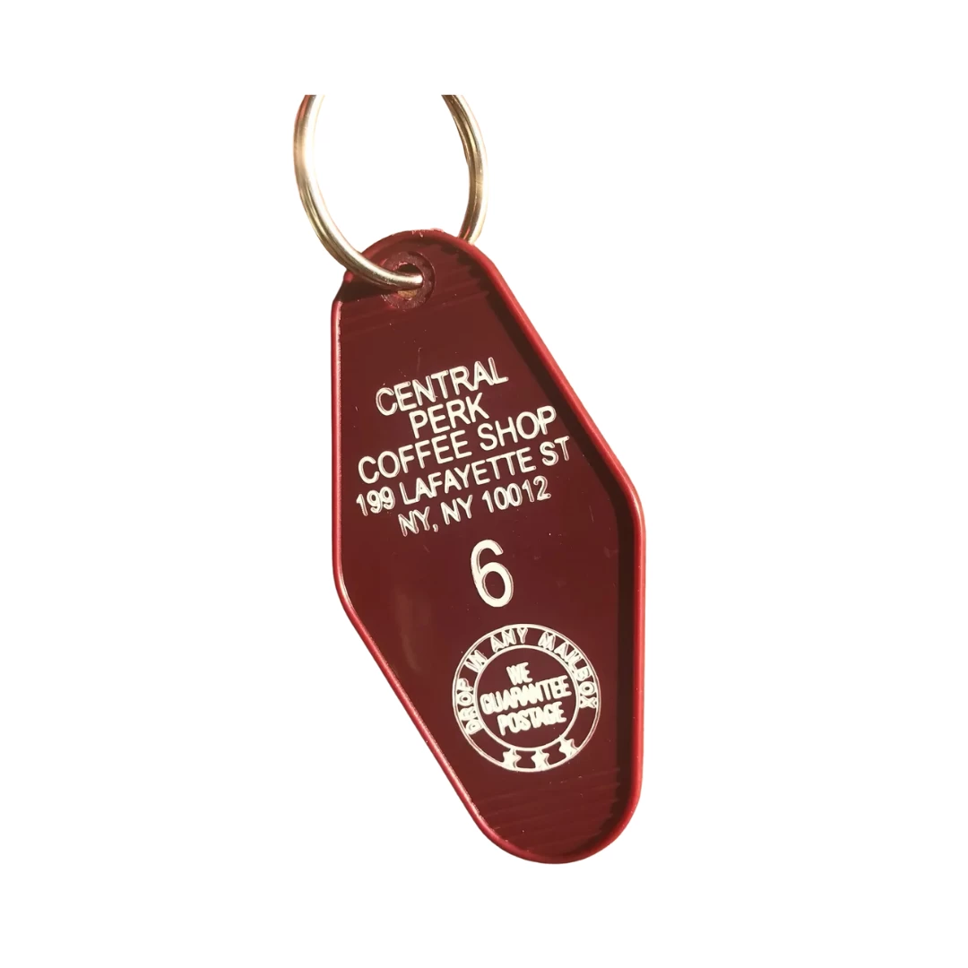The Motel Key Fob Central Perk exudes vintage charm with its stylish design and 32 mm slip ring. Plus, with our new in-house injection molding, this fob is now 100% Made in America and offers more color options. To top it off, an extra ring ensures a sleek, flat hang. Elevate your key game now.