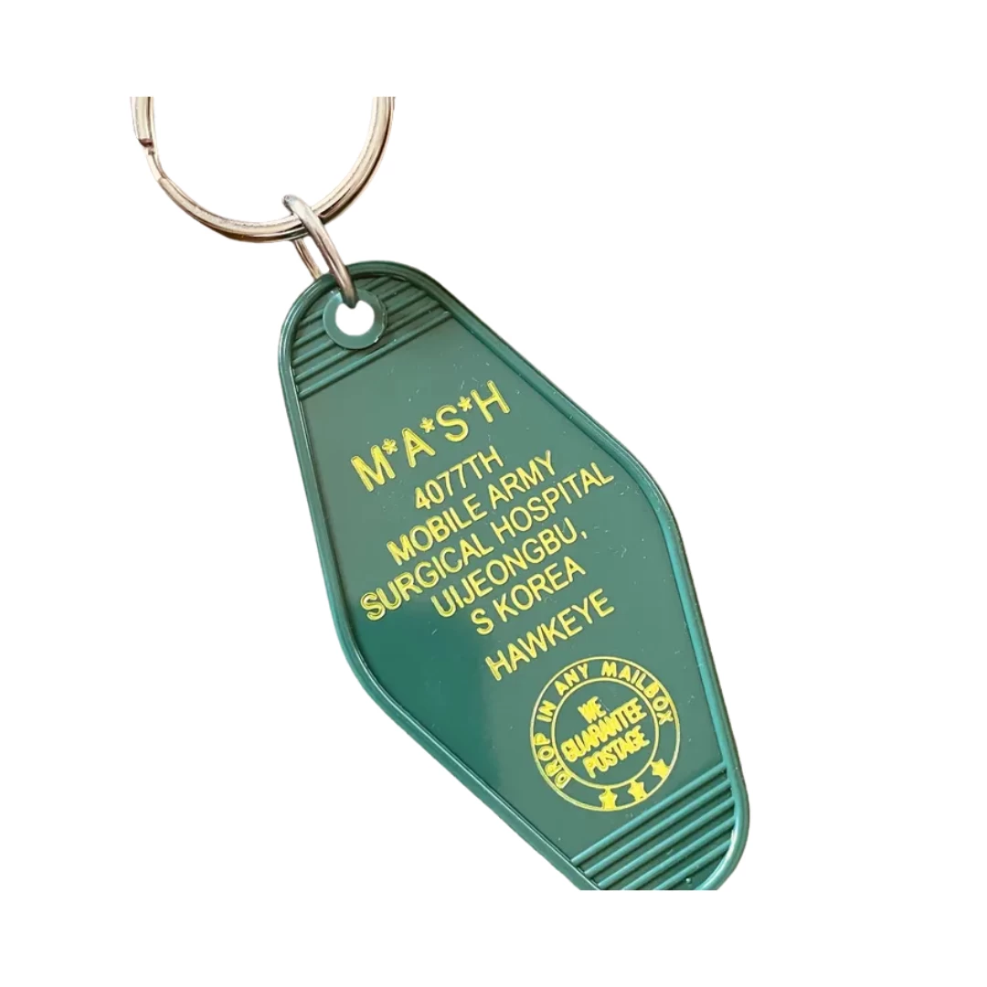 The Motel Key Fob M*A*S*HÂ exudes vintage charm with its stylish design and 32 mm slip ring. Plus, with our new in-house injection molding, this fob is now 100% Made in America and offers more color options. To top it off, an extra ring ensures a sleek, flat hang. Elevate your key game now.