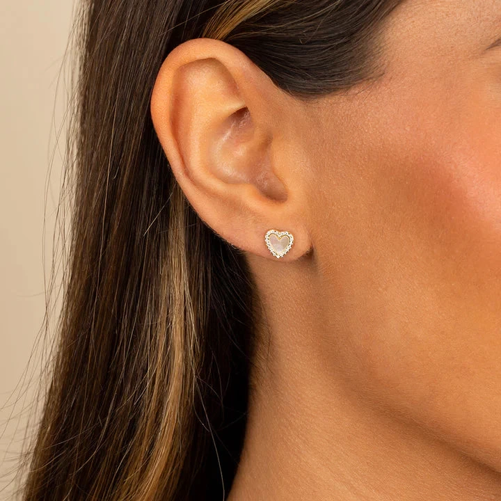 Mother of Pearl Stone Pavé Heart Stud Earring