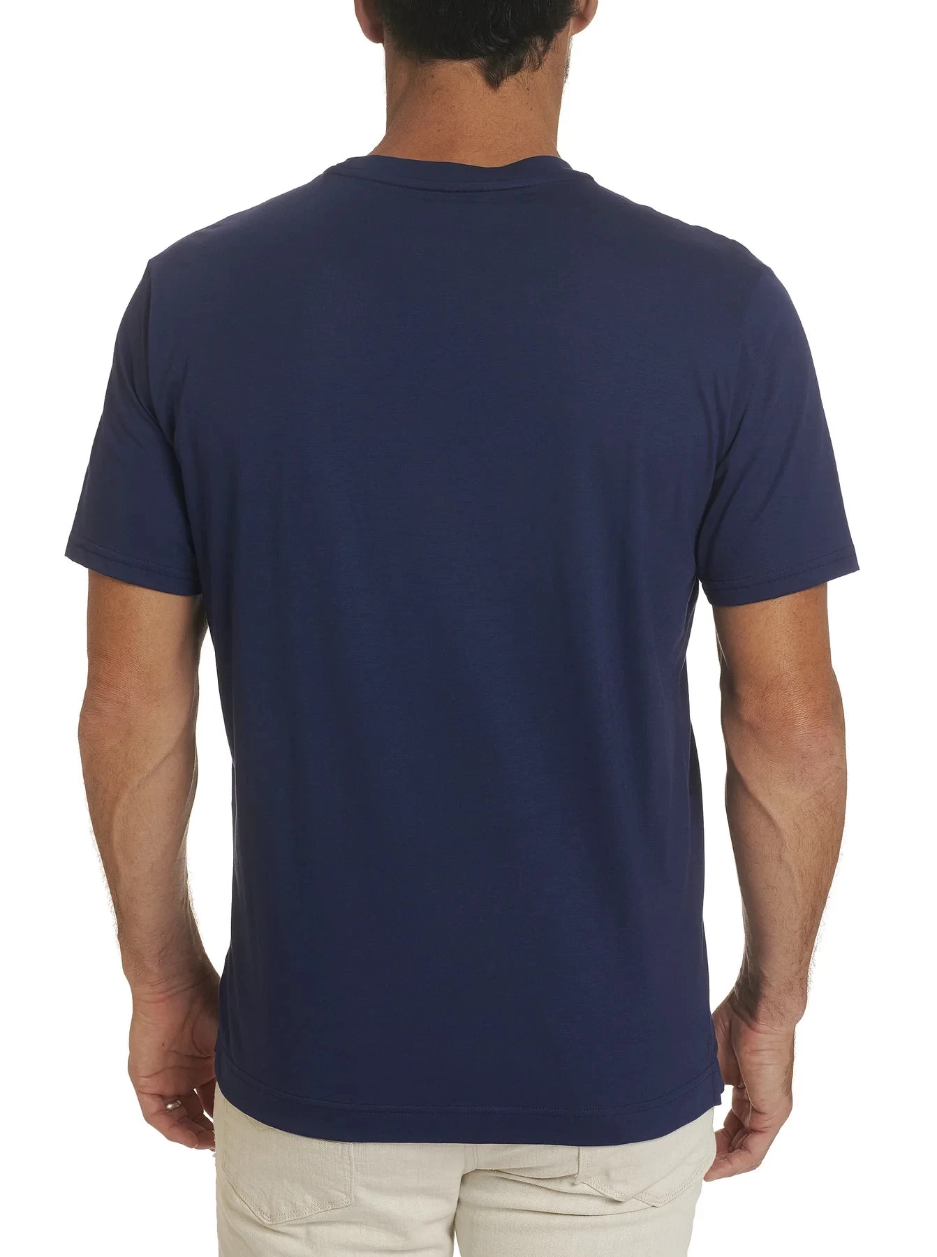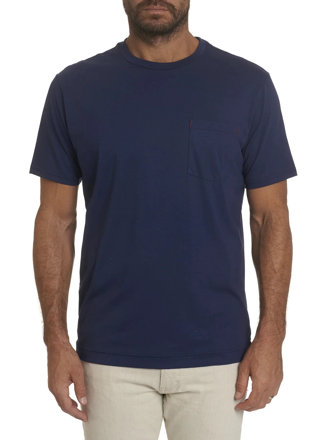 Introducing the Myles Short Sleeve Knit Shirt in Navy, made with super soft pima cotton and a touch of modal for unparalleled comfort. The contrast stitching at the trims of the chest pocket adds a touch of sophistication to your new favorite t-shirt. Elevate your wardrobe with this luxury piece.