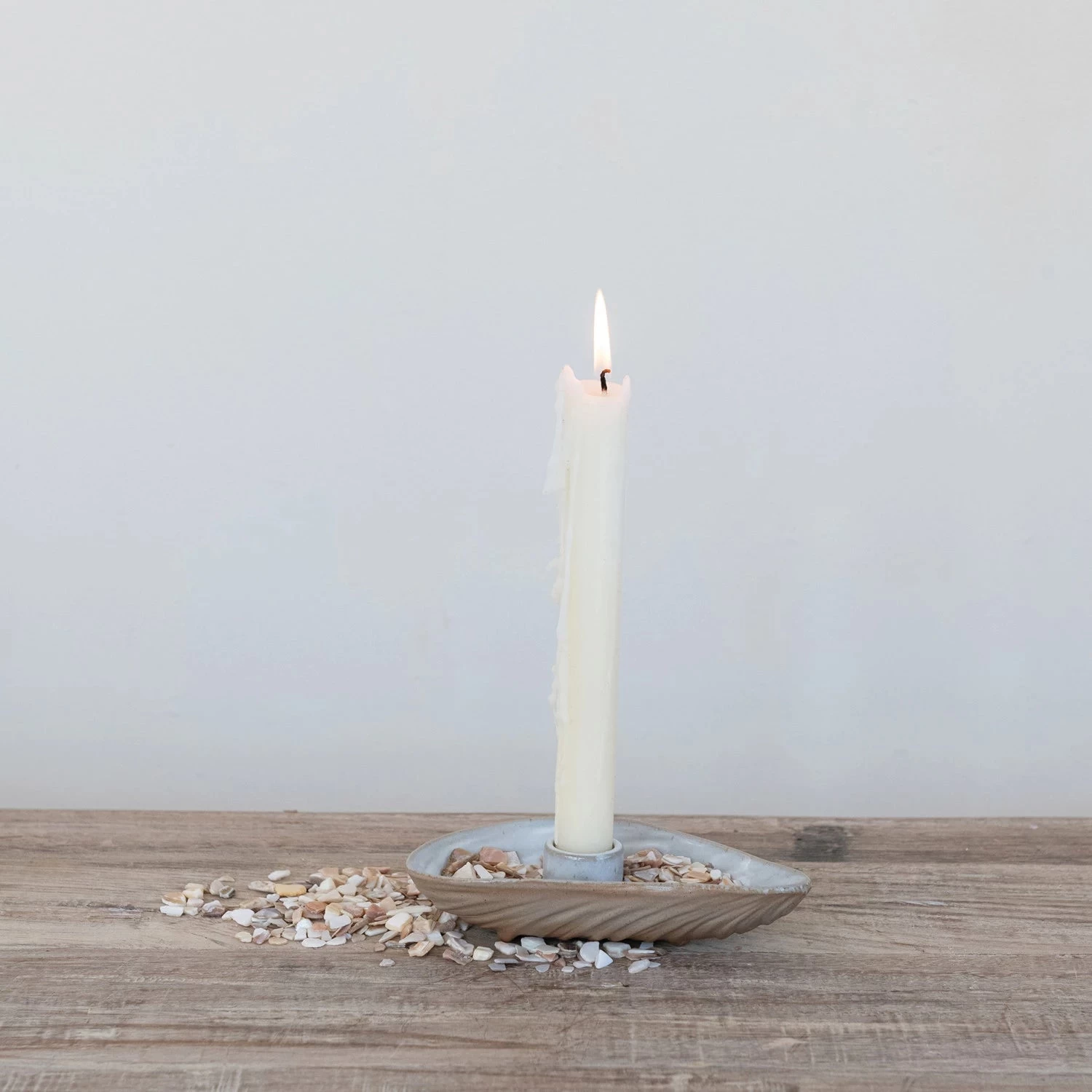Crafted from high-quality stoneware, our Oyster Shell Taper Holder adds a touch of elegance to any room. Its unique shell-shaped design not only holds tapers but can also be used as a decorative dish. Embrace the beauty of the sea with this luxurious piece.