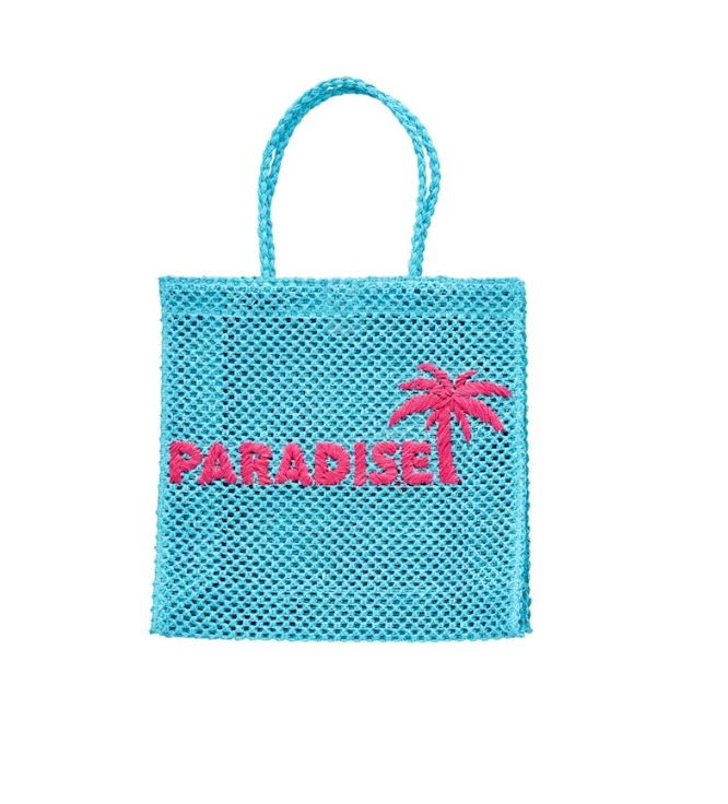 Indulge in luxury with our Paradise Tote. This beach essential is crafted from woven paper straw and adorned with hand applied verbiage and icons, exuding sophistication and exclusivity. Complete with an interior magnetic snap closure, keeping your belongings secure has never been more elegant.