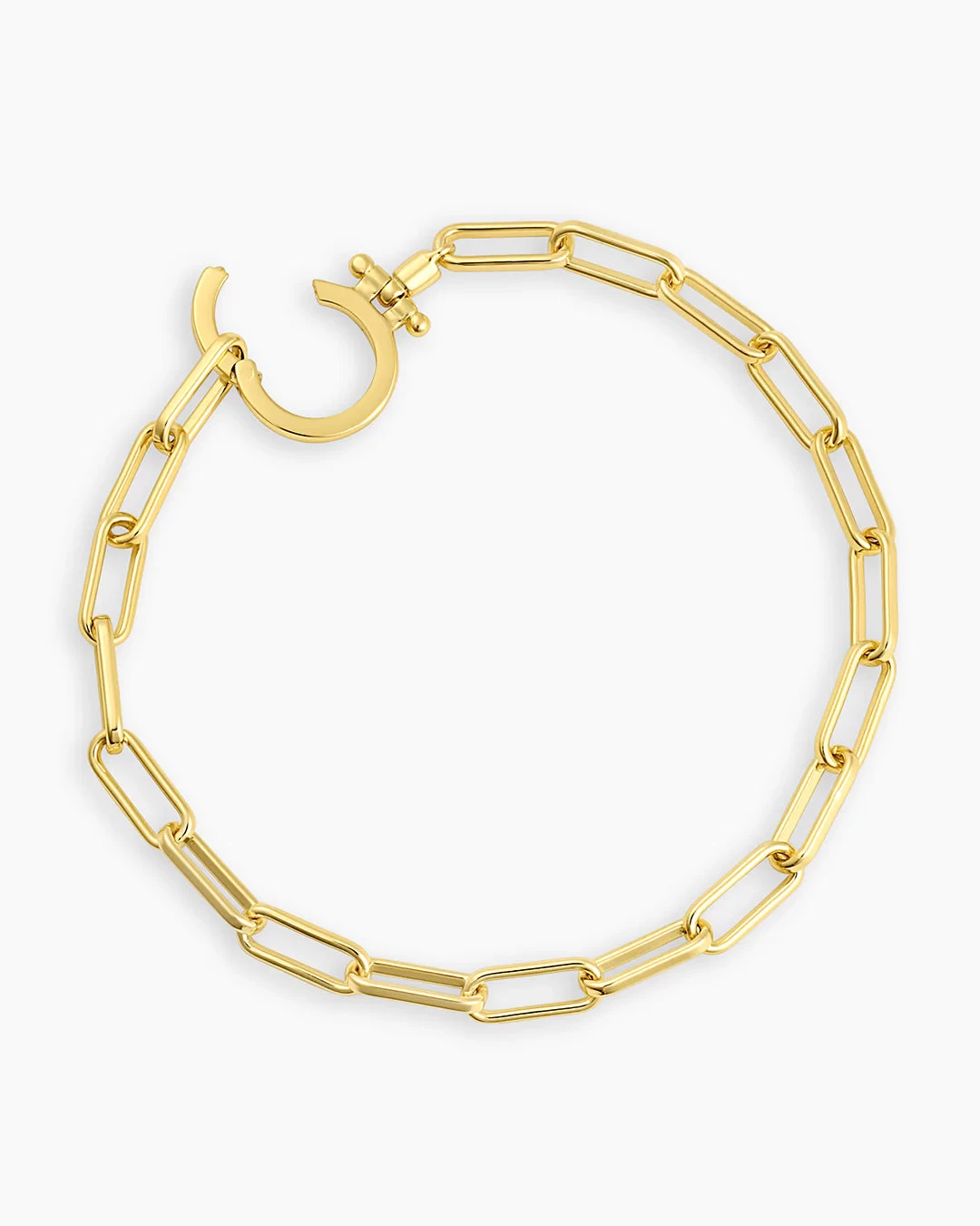 Elevate your look with the classic Parker Gold Bracelet. This timeless gold plated paperclip bracelet features offers a minimalist yet sophisticated look. Perfect for accessorizing a night out or an everyday look, the Parker Bracelet is an be a jewelry box must-have.
