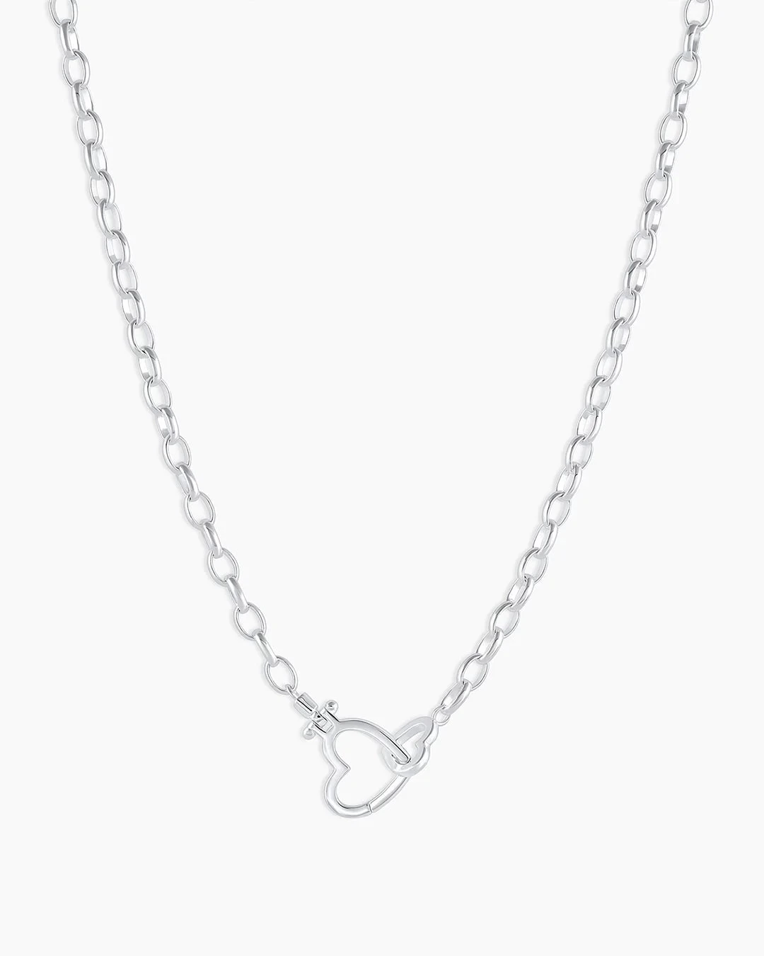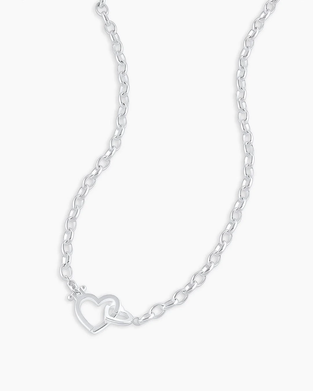 Add a hint of romance to your everyday look with the silver plated Parker Silver Heart Necklace. This beautiful necklace features a heart hinge closure, which adds a little love to your layered necklaces.