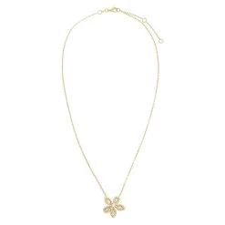Pave x Baguette Fancy Flower Pendant Necklace in Gold