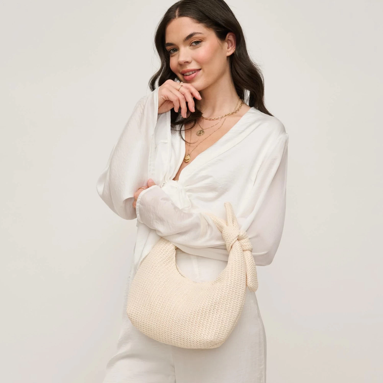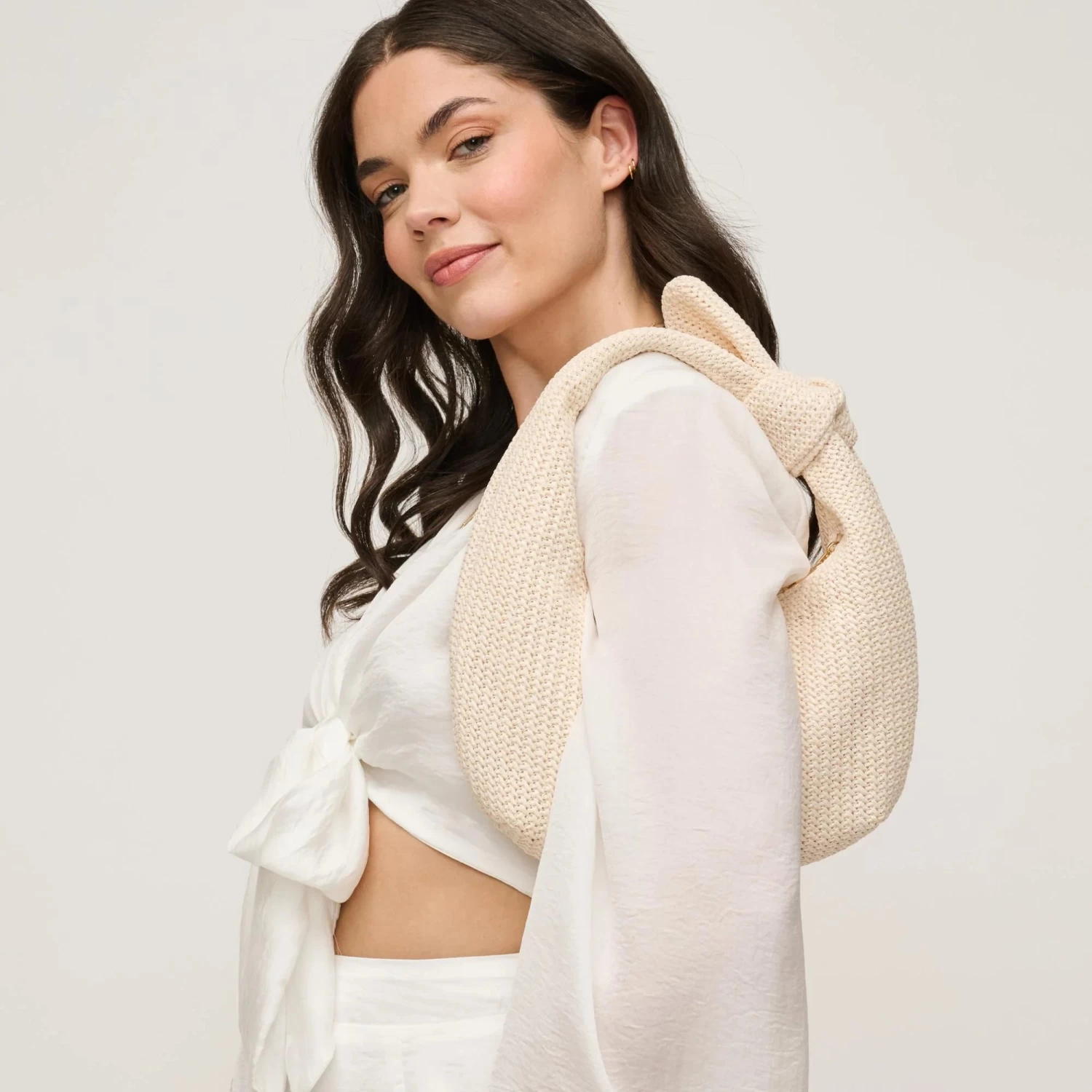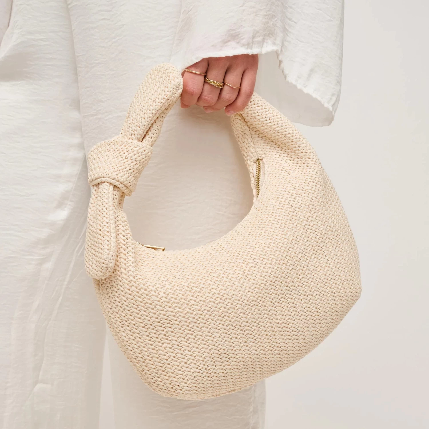 Meet the Penny Clutch in Ivory, a perfect blend of chic design and practicality. This slouchy knot-handle bag adds modern elegance to any outfit. Spacious enough for essentials yet compact for easy handling, it transitions effortlessly from day to night. Crafted from ethically sourced materials, the Penny Clutch reflects your values while offering versatility and trendiness. Designed for the style-savvy woman who values both quality and sustainability, this clutch is a must-have accessory to elevate your wardrobe.