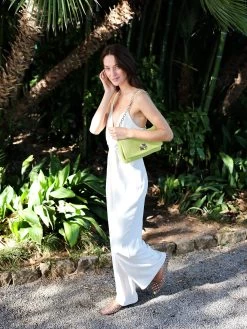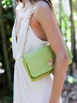 The Raffaella Shoulder Bag in Lime is your chic new plus-one for every occasion. Crafted from natural woven straw with a sleek finish, this structured bag features a stylish flap closure with a gold turn-lock clasp for added elegance. The standout chunky gold chain doubles as a statement shoulder strap, while its roomy interior keeps your essentials organized. Whether for summer soirées or city strolls, the Raffaella Shoulder Bag effortlessly elevates any outfit, combining style and functionality like never before.