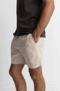 Stay cool and comfortable with the Classic Linen Jam in Sand by Rhythm—a relaxed-fit men’s linen short made from a durable linen-cotton blend. Designed for everyday wear, this elastic waist short features a 17″ above-the-knee cut, side pockets, a back patch pocket, and an adjustable drawcord for a custom fit. With its breathable, mid-weight fabric, it’s the perfect staple for laid-back days, warm weather, and effortless style.