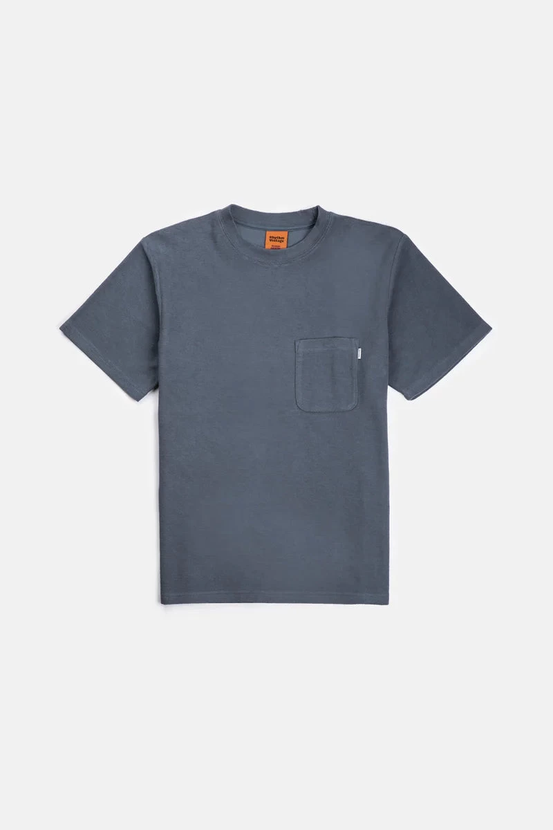 The Vintage Terry SS T-Shirt in Navy by Rhythm blends comfort and heritage style in a reverse terry textured fabric with a soft, vintage fit. Designed with a classic front pocket and a timeless worn-in look, this men’s terry cloth t-shirt offers a fresh update to a laid-back staple—perfect for effortless, everyday wear.