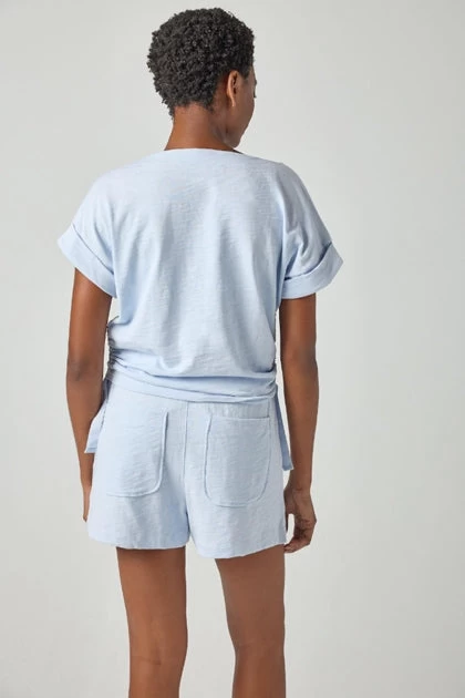 The Ruched Side Boatneck in Sky by Lilla P blends modern style with comfortable sophistication. Made from midweight Textured Knit fabric, this versatile women’s top features a polished boat neckline, dropped shoulders, and adjustable ruched sides for a flattering drape. Pair with matching Lilla P bottoms or your favorite wardrobe essentials for a chic, elevated everyday look.