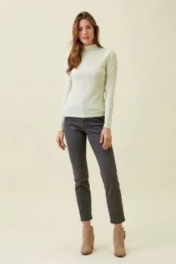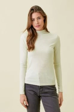 The Samantha Top in Ecru is a perfect addition to any wardrobe. Featuring a mock neck, long sleeves, and a fitted silhouette, this modern top is constructed in a ribbed, silver shimmer fabric for a sophisticated and eye-catching look.