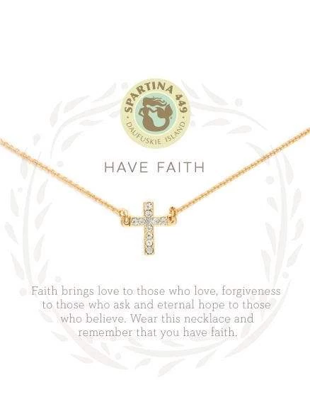 HAVE FAITH: Faith brings love to those who love, forgiveness to those who ask and eternal hope to those who believe. Wear this Sea La Vie Have Faith Necklace in Gold and remember that you have faith. Our 18k Gold Plated Jewelry glimmers in the glint of the bright sun, just like you.