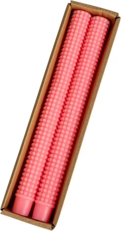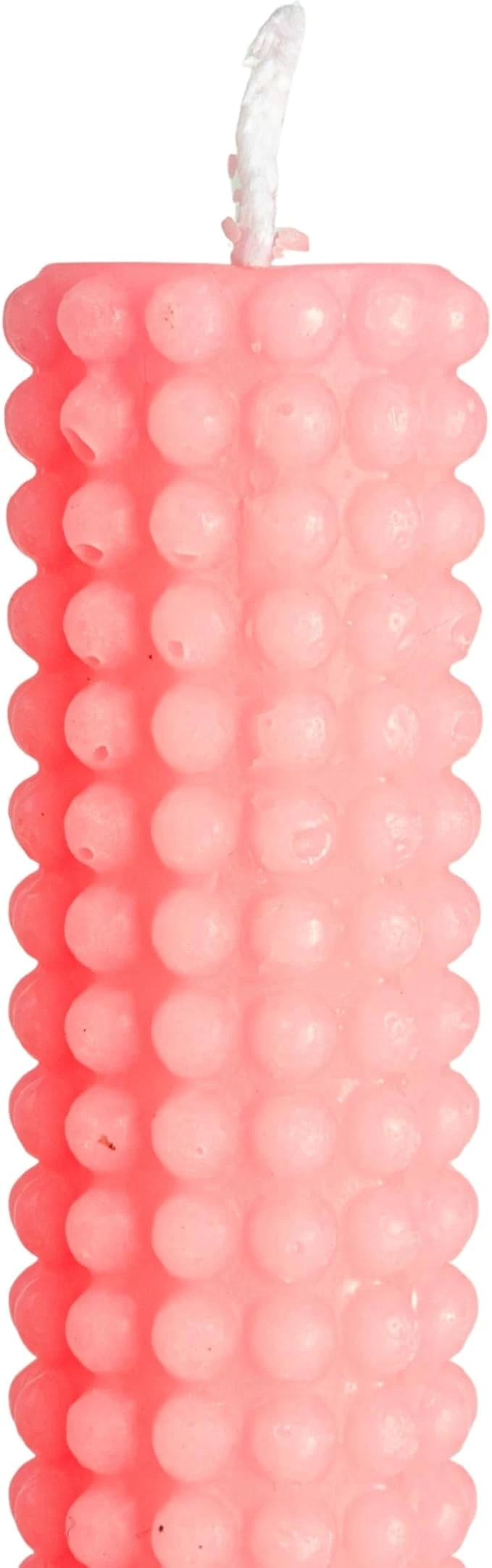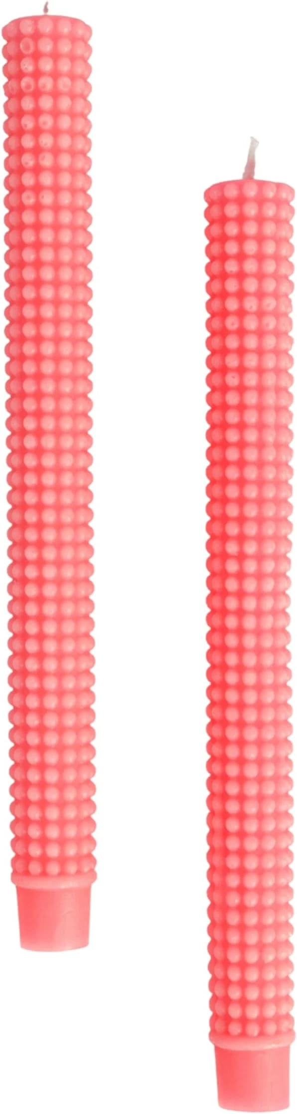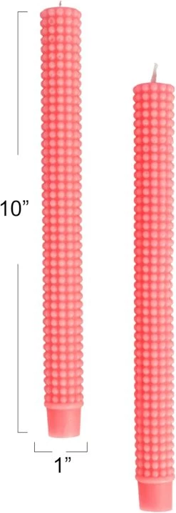 Add a touch of sophistication with these Set Of 2 Hobnail Taper Candles. With a beautiful pink color and a delicate hobnail design, these candles come in a set of 2 and are the perfect addition to any elegant setting. Light up your space with style and luxury.