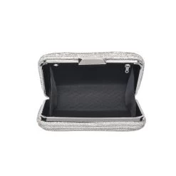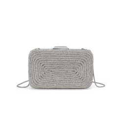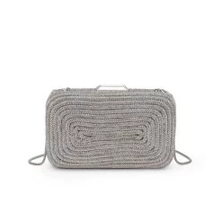 Elevate your evening with the Shireen Evening Bag. This exquisite piece is adorned with a coiled rhinestone design and shimmering silver hardware, reminiscent of stardust. The detachable chain strap offers versatility, while the fabric-lined interior keeps your essentials secure. A touch of luxury for any occasion.