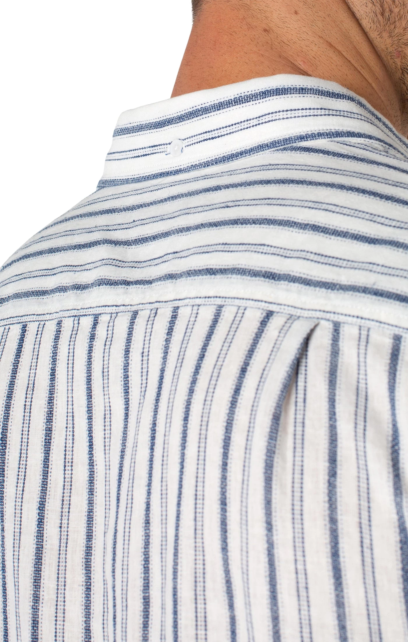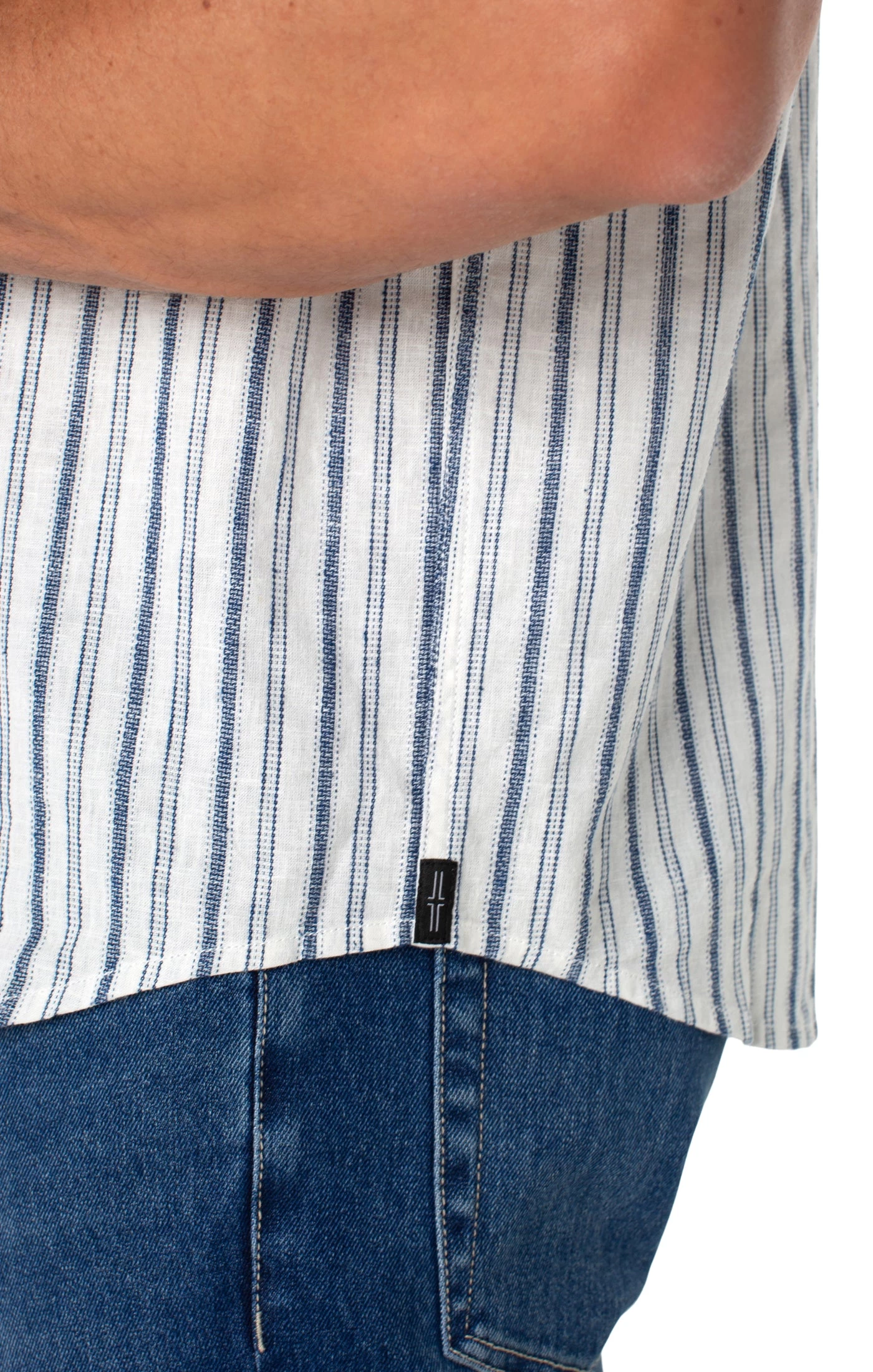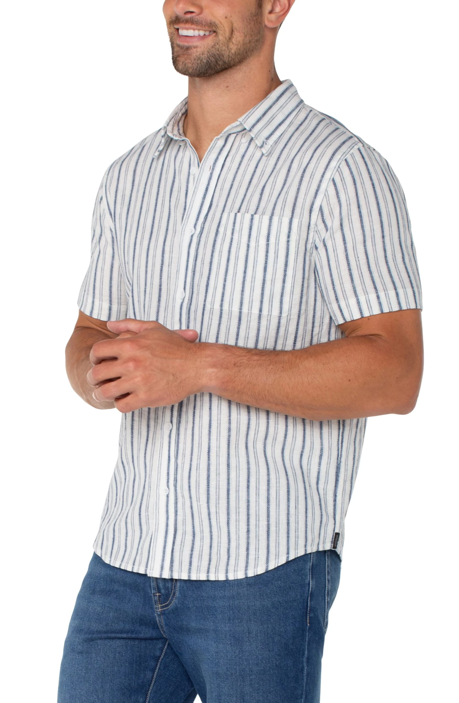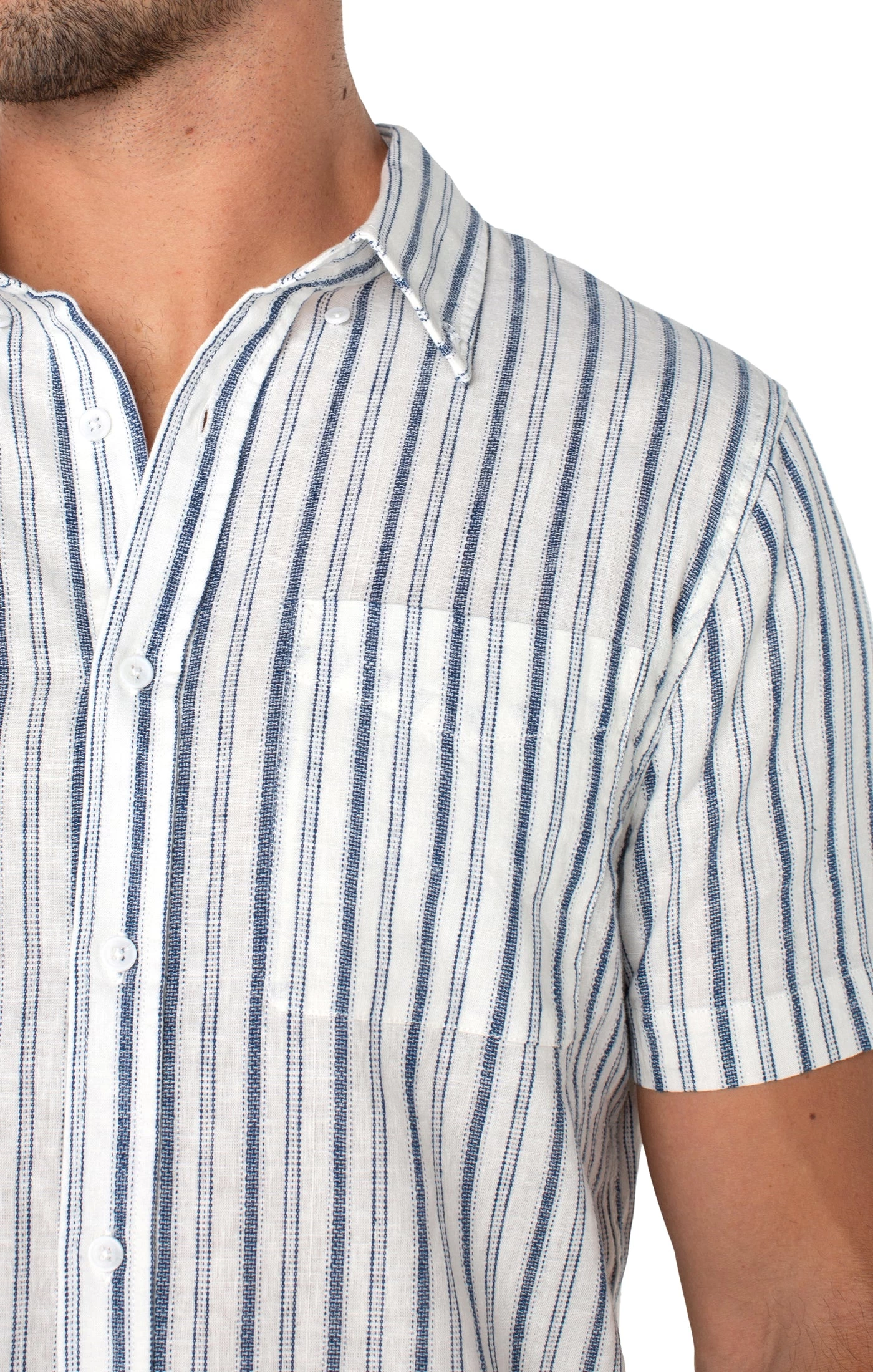 The Short Sleeve Button Up Shirt in Navy White combines timeless style with modern appeal. Featuring a classic stripe print, this shirt is perfect for any occasion. Pair it with shorts or jeans for a relaxed, stylish look, or elevate it with a blazer and chinos for a more polished vibe. Ideal for casual outings, office wear, or weekend gatherings, this versatile shirt offers both comfort and sophistication.