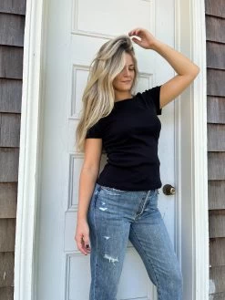 The Short Sleeve Crew in Black is a timeless piece, crafted from durable 1×1 rib fabric for a chic yet comfortable fit. It has a body-hugging silhouette ideal for wearing alone or layering with other pieces. Perfect for any occasion, this versatile tee pairs well with denim, skirts, and everything in between!