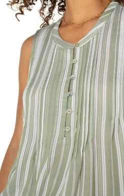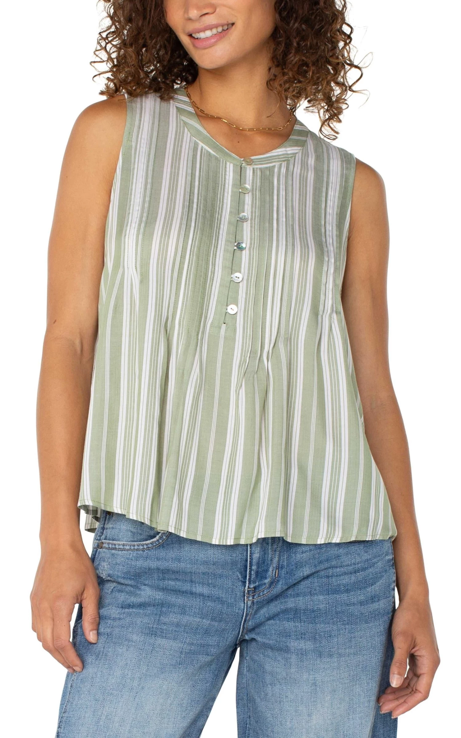 Brighten up your wardrobe with the Sleeveless Popover Blouse by Liverpool, featuring a vibrant striped print and an easy, breezy silhouette. Designed for versatility and comfort, this lightweight blouse is perfect for warm-weather days. Pair it with shorts for a casual daytime look or style it with denim and heels for an effortlessly chic night-out outfit. A must-have for summer layering and easy dressing.
