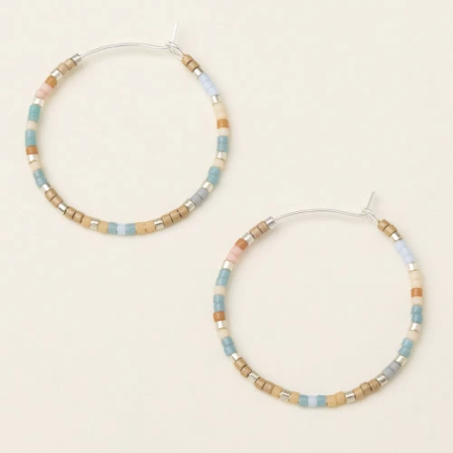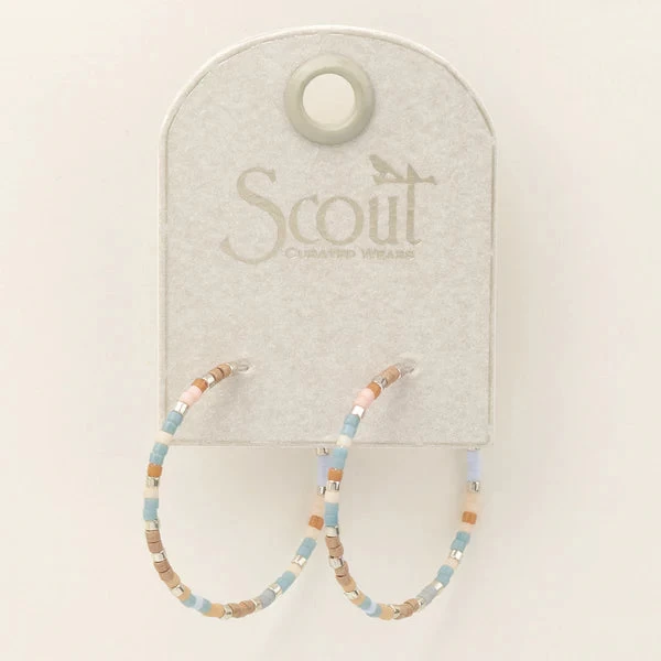Indulge in the modern and playful elegance of our Small Hoops in Desert Blue. Each hoop is adorned with sleek Miyuki Delica beads in a vibrant color palette, perfect for mix and match bracelet stacks and earrings. Elevate your style with these fun and eye-catching accessories.