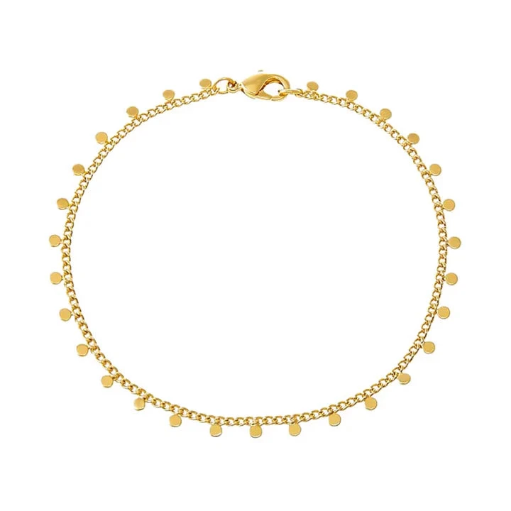 Add a playful yet sophisticated touch to your jewelry collection with Adina Eden’s Solid Dangling Discs Cuban Link Anklet. Crafted from premium brass and finished with a radiant 14K gold plating, this chic piece features a timeless Cuban link chain adorned with delicate dangling disc accents that catch the light with every step. Designed for comfort with a perfect 9-inch length, it’s ideal for wearing solo or layering with other anklets to create a trendy, stacked look. A must-have accessory from Adina Eden that effortlessly elevates any ensemble with its subtle elegance and contemporary flair.