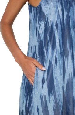 Breezy and effortless, the Spaghetti Strap Maxi in Watercolor Ikat by Liverpool is your go-to dress for warm-weather style. Designed with a relaxed fit and lightweight fabric, this maxi dress features delicate spaghetti straps and a vibrant watercolor ikat print for a fresh, summer-ready look. Perfect for beach days, brunch dates, or vacation wear, it pairs beautifully with slides, sneakers, or strappy heels—whatever your day calls for.