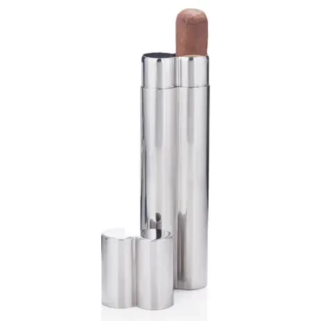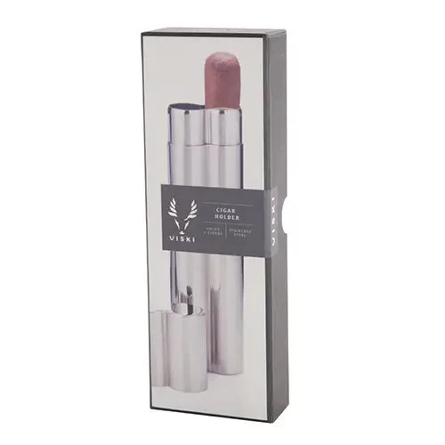 Keep your cigars close at hand with our Stainless Steel Cigar Holder. Crafted from high-quality stainless steel, this case can hold two cigars up to 52-gauge. With a simple twist of the cap, you can release the rich, leathery aroma of your hand-rolled tobacco. A must-have for any cigar connoisseur.