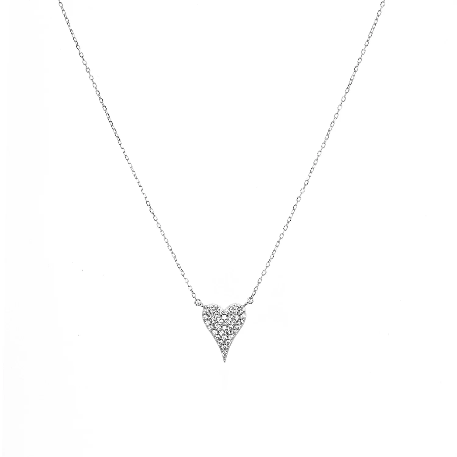 Sterling Pave Heart Necklace in Silver
