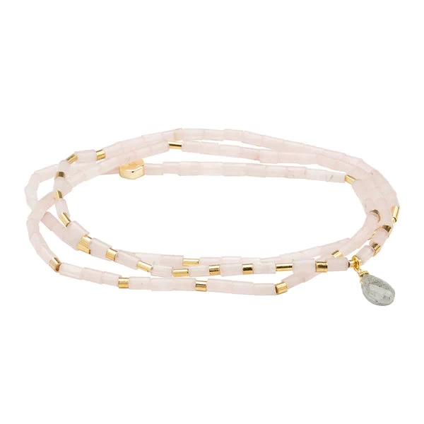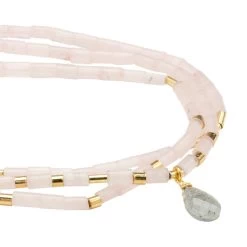 Elevate your jewelry collection with the stunning Stone of Love. This versatile accessory features cylindrical semi-precious stone beads and shimmering metallic tubes, culminating in a beautiful faceted teardrop pendant. This accessory is designed for effortless stacking and layering, allowing you to create your own unique style statement. Whether you prefer a delicate and minimalistic look or a bold and eclectic ensemble, this accessory offers endless possibilities. Embrace its versatility as a necklace or a bracelet, and enjoy the beauty and sophistication it brings to your ensemble!