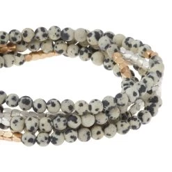 Tap into the energies of the earth with this versatile piece. Semi-precious gemstones adorn wrist & neckline and effortlessly convert from bracelet to necklace. This wrap can be wrapped 4-5 times as a bracelet and 1-2 times as a necklace.